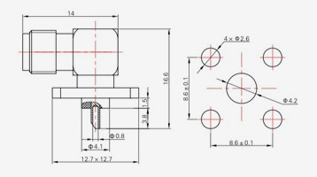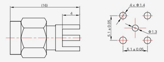 | SMA-KFD13 | 16 | 4 | 0.5×0.2 | Φ4.1 | Φ4.2 |