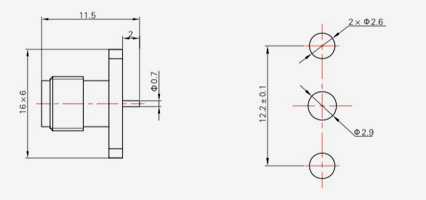 | SMA-KFD68 | 15.2 | 3.2 | 0.5×0.2 | Φ2.1 | Φ2.2 |