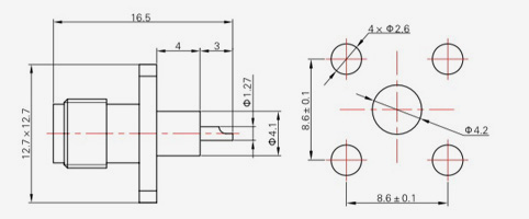 | SMA-KFD73 | 16 | 4 | 1.27×0.2 | Φ4.1 | Φ4.2 |