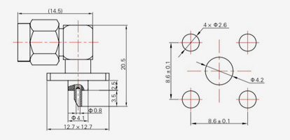 | SMA-KFD45 | 14.4 | 2.4 | 0.5×0.2 | Φ4.1 | Φ4.2 |